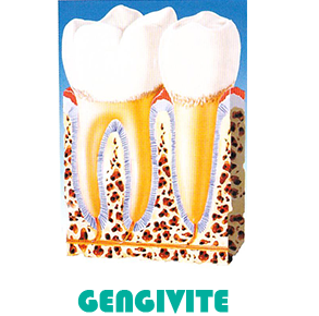 GENGIVITE: E' il primo stadio della malattia parodontale. Le gengive diventano rosse, gonfie e possono sanguinare facilmente. In questo stadio, il disturbo è ancora reversibile, ma se non curato può progredire fino ad una forma più grave detta parodontite;
