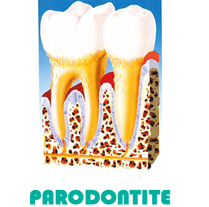 PARODONTITE: (Detta anche piorrea). E' lo stadio successivo della malattia parodontale. L'infiammazione oltre alla gengiva coinvolge anche l'osso e le altre strutture che sostengono i denti, i quali diventano mobili e, nei casi più gravi, possono cadere o dover essere estratti.