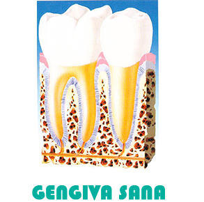 GENGIVA SANA: Una gengiva sana protegge l’osso sottostante, conferendo stabilità ai denti. In seguito all’infezione batterica si trasforma in;
